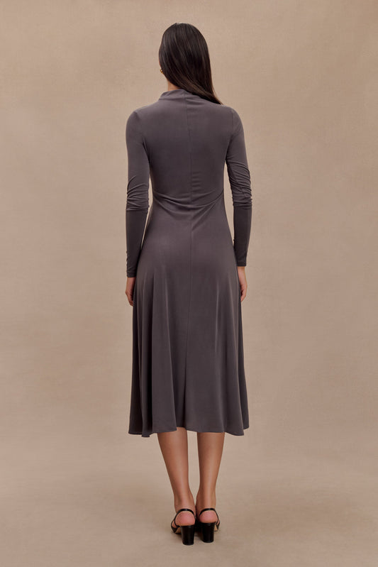 Jessie Cowl Neck Knit Midi Dress - Charcoal Marle