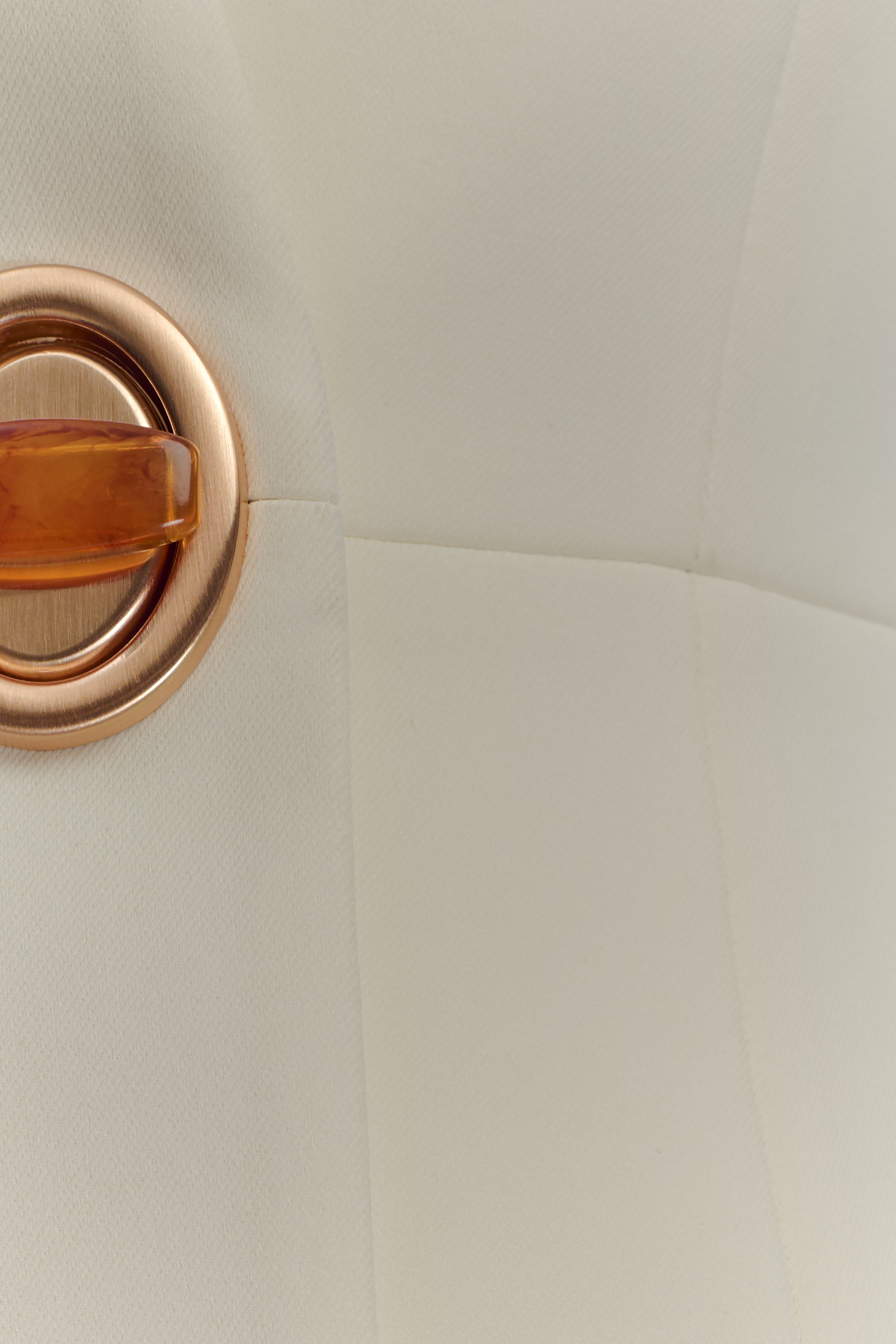 The ANGELIE Suiting Vest Top is a refined take on modern tailoring, designed to sculpt and flatter. Featuring a longline sleeveless silhouette with a sharp V-neckline and folded right lapel, this piece blends classic suiting elements with feminine flair. Panel detailing and a defined waist seam create structure, while a single waist button closure and kick-out flared hem offer shape and movement. Fully lined for a polished finish, pair it with the Angelie Suiting Maxi Skirt for a sharp, sophisticated set that goes beyond the expected.