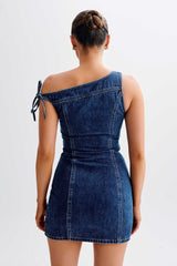 The BAKER Off Shoulder Denim Mini Dress is a fashion-forward statement piece perfect for any stylish wardrobe. Featuring an asymmetrical neckline and drop shoulder design, this dress offers a unique silhouette that stands out. The shoulder tie detail adds a touch of elegance, while the contour panel lines flatter the figure. With a convenient side zip closure and a mini length that exudes confidence, this dress is both chic and comfortable. Ideal for casual outings or dressed-up occasions, the Baker Off Shoulder Denim Mini Dress effortlessly combines contemporary style with classic denim appeal.