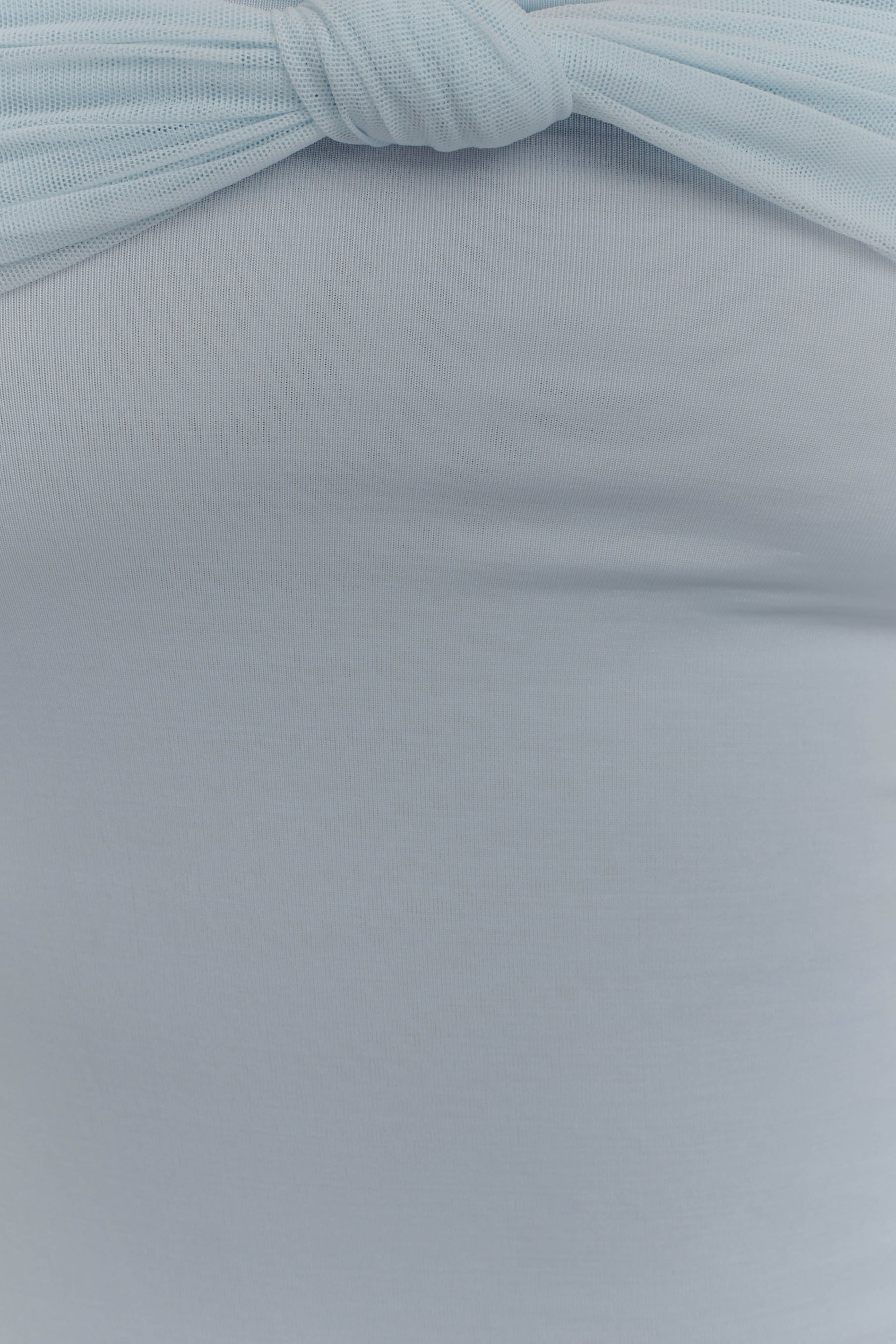 The BERNADINA Mesh And Slinky Halter Maxi Dress is your go-to statement piece for sun-drenched escapes and golden hour glamour. Designed with an adjustable halter neck and a fluid off-shoulder mesh overlay, this maxi silhouette flatters with a straight fit and a centre front knot that softly gathers at the waist. Lightweight and effortlessly elegant, this dress moves with the breeze—making it perfect for poolside cocktails, seaside dinners, and everything in between.