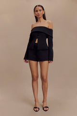 The CELENE Off Shoulder Jacket combines contemporary style with effortless elegance, featuring a Bardot neckline and an off-the-shoulder design for a chic, sophisticated look. The long sleeves and relaxed fit ensure comfort and ease of movement, while the centre front buttons, though non-functional, add a touch of classic detail. The front split and neckline overlay enhance the jacket’s modern appeal. Perfectly paired with the Celeste Hot Pant Shorts or the Celene Buckle Skort, the Celene Jacket creates a coordinated and fashionable ensemble that transitions seamlessly from day to night, making it a versatile addition to any wardrobe.