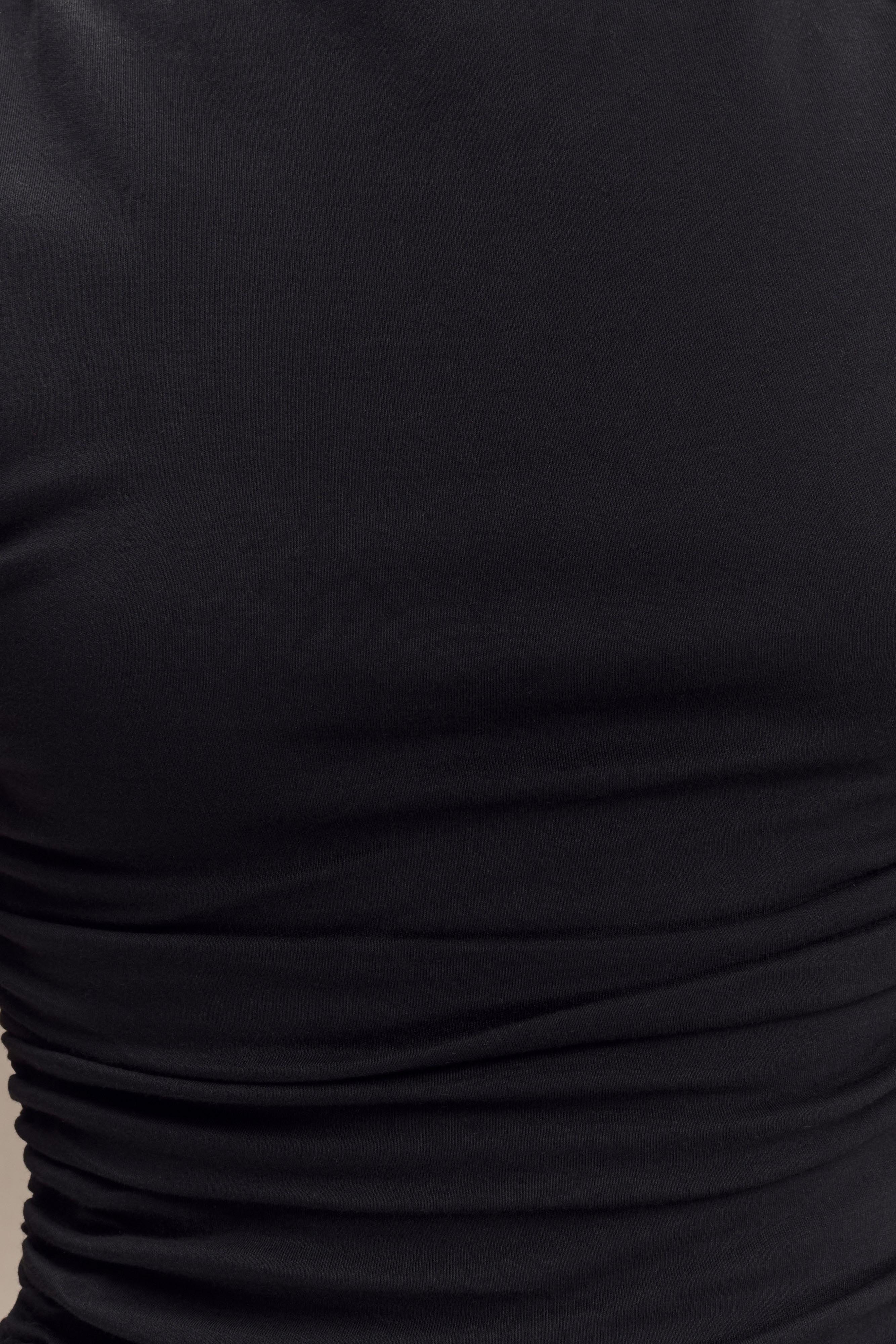 The ELLIOT High Neck Sleeveless Maxi Dress exudes effortless elegance with its refined design and sophisticated details. Featuring a high neckline and sleeveless cut, this maxi dress highlights a sleek, elongated silhouette. The ruched side details add a touch of texture and visual interest, creating a flattering fit that enhances the body's natural curves. Lined for a smooth, comfortable wear, and crafted from soft jersey fabrication, this dress combines style with ease. With its graceful maxi length, it’s perfect for making a chic statement at any formal or special occasion.