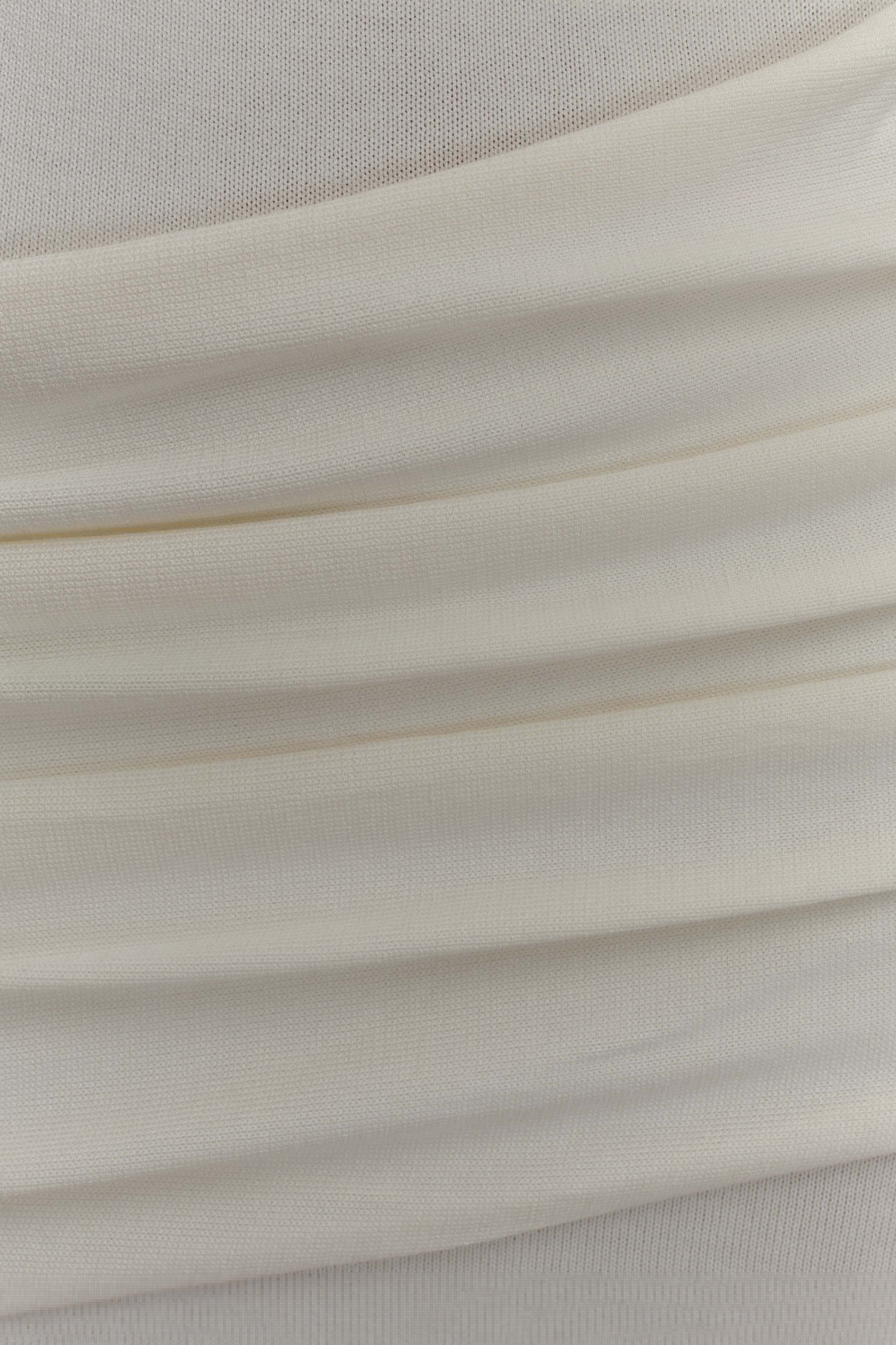 The IRENE Gathered Knit Maxi Skirt is a sleek, sculptural piece designed to flatter. Crafted in a soft jersey with a draped overlay, this pull-on skirt hugs the body in a bodycon fit before flaring into a mermaid shape for fluid movement. Unlined for a lightweight feel, it offers effortless sophistication with a modern edge. Pair it with the Irene Gathered Knit Top for a coordinated ensemble that exudes confidence and refined allure.