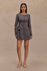 The JOLIE Boat Neck Suiting Mini Dress epitomises refined sophistication with its classic boat neckline and structured shoulders that create a polished, tailored look. The button front closure adds a touch of elegance, while the long sleeves provide a versatile, sophisticated silhouette. The fitted waist accentuates your shape, and the flared skirt adds a playful, feminine touch. Perfect for professional settings or special occasions, the Jolie Dress seamlessly combines timeless design with modern styling for a chic and flattering ensemble.