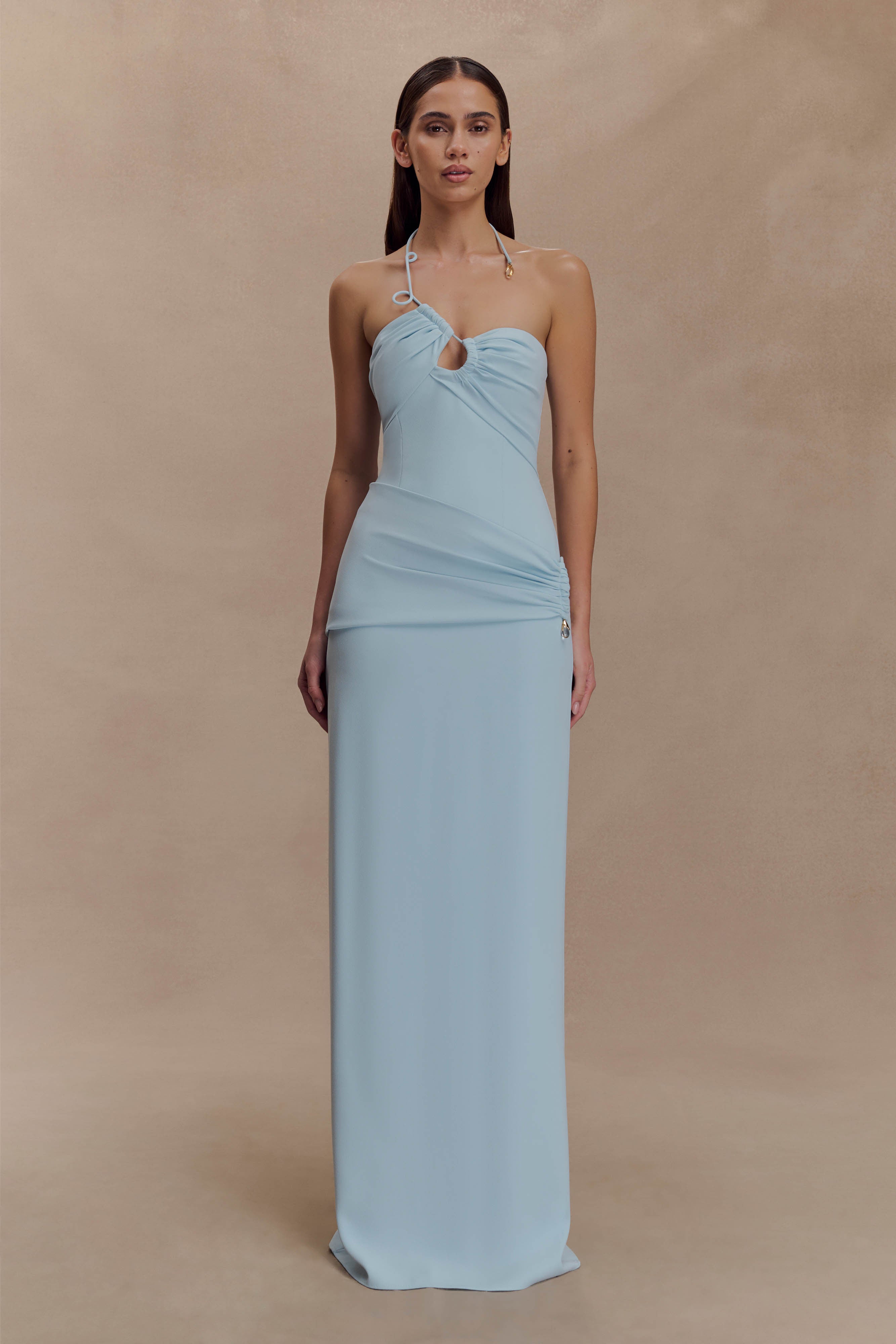 The LALIA Teardrop Maxi Dress is a study in modern elegance. Designed with a strapless bodice and a wraparound neck piece that creates an asymmetrical neckline, it’s elevated by an overlay panel across the waist for a sculpted effect. An internal waist stay offers secure support, while a centre back split allows for ease of movement. Finished with a sleek invisible side zip, this dress is cut to a maxi length—made for evening moments that demand a confident, refined presence.