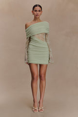 The LUXIE Lace Knit Mini Dress blends delicate detail with directional design. Featuring an asymmetrical neckline, the long lace sleeves and bodice offer a semi-sheer contrast to the soft knit overlay that wraps the bust and skirt. Designed in a mini length with a body-skimming fit, this dress is equal parts sultry and sophisticated—perfect for after-dark occasions and statement evenings.