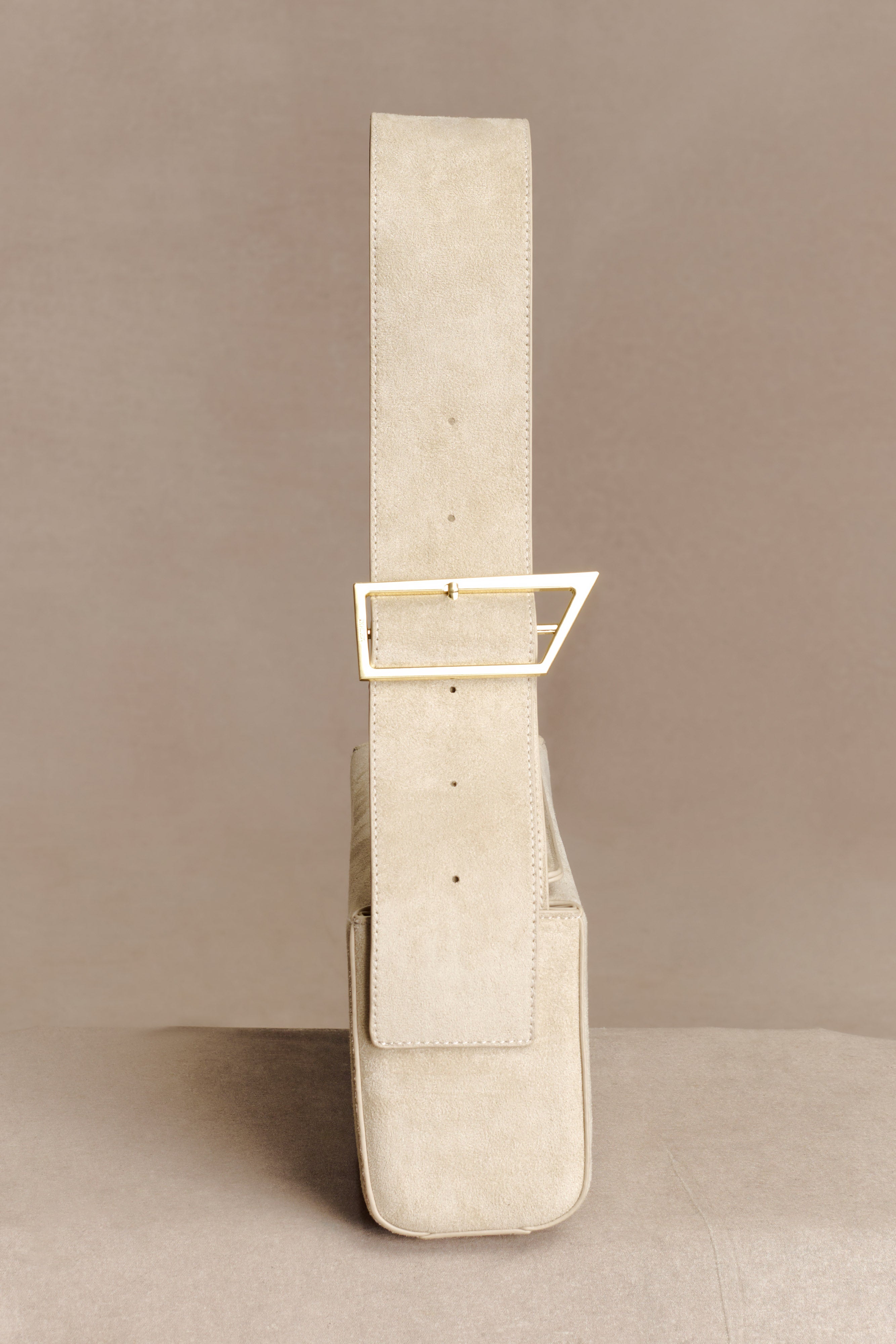 The MARIA Faux Suede Shoulder Bag is a polished accessory designed for everyday elegance. Crafted in a fuax suede leather, it’s finished with a custom adjustable buckle for a refined signature touch. A fully lined interior with an internal pocket keeps essentials secure, while the streamlined shoulder shape ensures this bag transitions effortlessly from daywear to after-dark styling.
