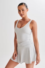 NADINE is a sleeveless yoga top with a scooped neckline and longline hem. An internal, sewn-in bra with detachable padding offers high of customisable support. Its contemporary cut and clean seams give it a modicum of modern, minimalist charm. Comfortable nylon and elastane fabrication ensures it's stretchy and breathable for most any level of activity.