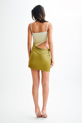 The NELLIE Cowl Draped Slinky Mini Dress is a striking piece that exudes elegance and allure. Featuring a graceful cowl neckline and adjustable straps for a perfect fit, this mini dress is designed to flatter. The asymmetrical draped waistline and hip cutout add a modern, edgy twist, while the asymmetrical hem enhances its unique silhouette. The ombre print and lined design ensure both style and comfort, making this mini dress a standout choice for any special occasion or night out.