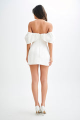 The PORTIA Off Shoulder Satin Corset Dress is a stunning blend of elegance and modern style. Featuring off-the-shoulder sleeve panels that can be removed for versatility, this dress offers a chic and sophisticated look. The fitted bodice and structured skirt shape create a flattering silhouette, while the centre-back zip ensures a seamless fit. With its mini length and fully lined design, the Portia dress is perfect for making a statement at any special occasion.