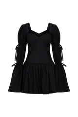 Embrace a blend of playful charm and sophisticated style with the RAINE Long Sleeve Cotton Mini Dress. Featuring a flattering princess neckline, this dress is designed to accentuate your figure with a fitted bodice that provides a sleek silhouette. The ruched sleeves, adorned with strap tie detailing, add a unique touch, creating an eye-catching element that elevates the overall design. A gathered lower skirt flows gracefully, offering a playful yet elegant vibe. The mini length makes it perfect for showing off your favourite footwear. Complete with a side zip closure and fully lined for comfort, this dress is ideal for any occasion, ensuring you look chic and feel fabulous.