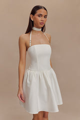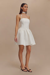 The RUBY Halter Mini Dress is a stunning embodiment of playful sophistication and effortless glamour. With its round neckline and fitted bodice, this dress accentuates the figure beautifully, while the full gathered skirt adds a touch of playful volume. The buckle detail on the straps and wrap-around adjustable straps offer a customizable fit and a chic, contemporary edge. The mini length showcases a youthful charm, and the lined construction ensures a smooth, comfortable fit. Finished with a convenient side zip, the Ruby Dress is perfect for making a memorable entrance at any special occasion.