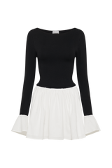 The SANSA Knit and Linen Mini Dress seamlessly blends comfort with style, featuring a crew neckline and a fitted knitted bodice and sleeves that offer a chic and cozy fit. The cotton flared sleeve cuffs and skirt add a touch of playful elegance, creating a flattering, feminine silhouette. With a stretch bodice that eliminates the need for a closure, this dress provides both ease and versatility. Perfect for casual outings or laid-back gatherings, the Sansa Dress combines a relaxed design with refined details for a sophisticated yet comfortable look.