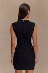 Make a sleek statement in the SCHEANA Stretch Crepe Mini Dress, where clean lines meet powerful design. Featuring a high neckline and wide shoulders, this sleeveless silhouette creates a confident frame. The mini length is balanced by a low-rise waist belt that accentuates the figure, while the stretch crepe fabric hugs in all the right places. Fully lined for comfort and structure, this dress is your go-to for elevated nights out with a modern edge.